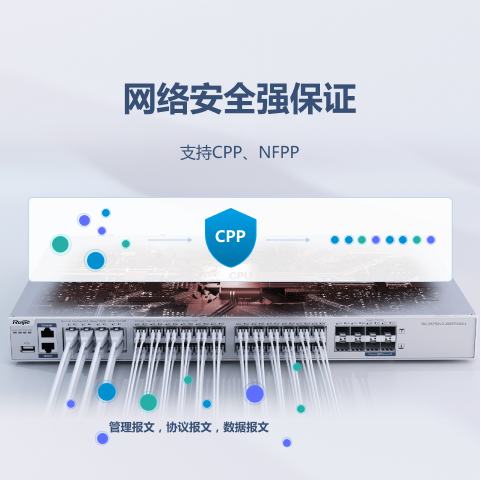 - 网络安全实时监测,支持CPP、NFPP、RLDP,保证网络持续健壮性