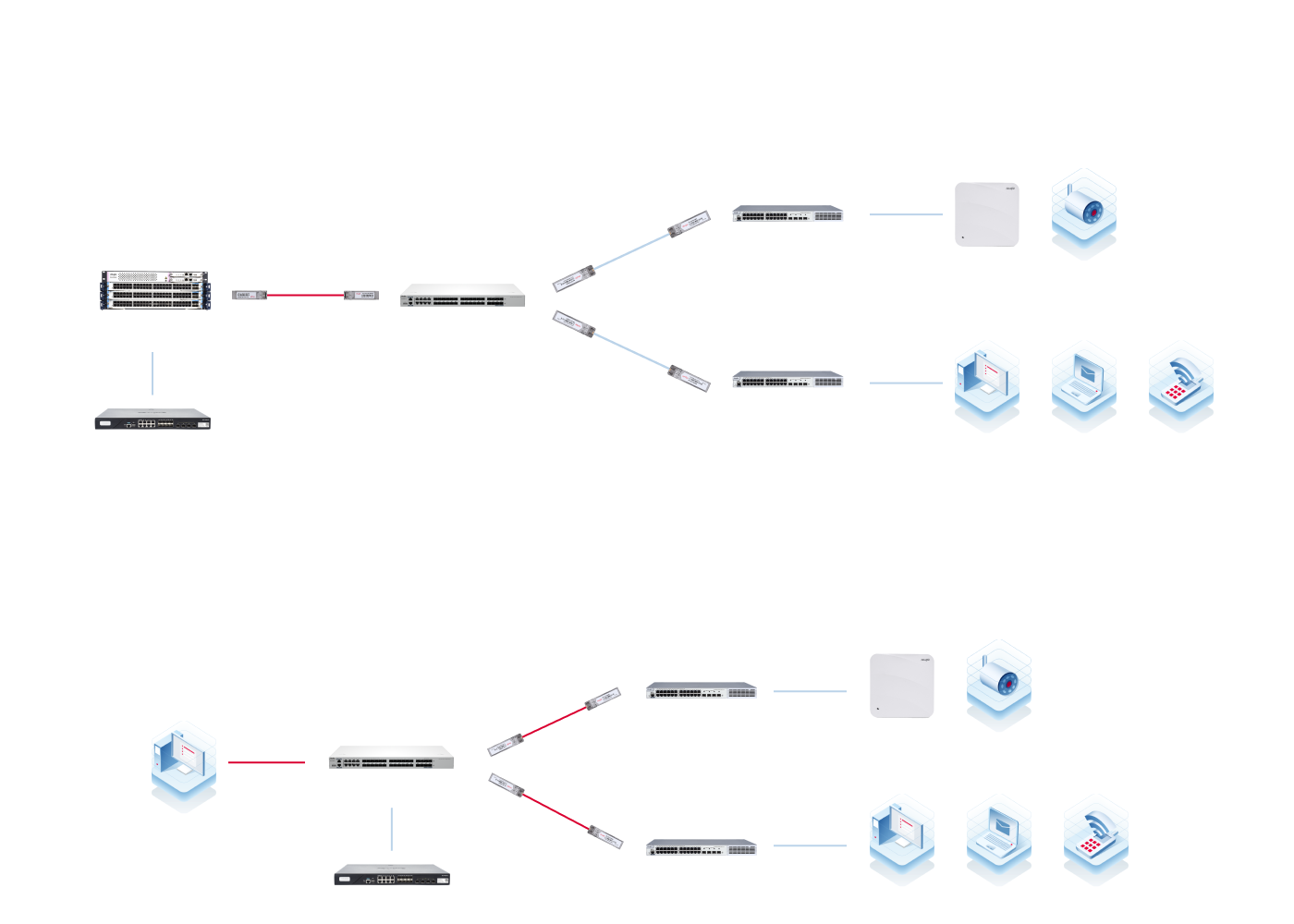 推荐用于中小企业园区网核心设备,通过1+1电源冗余,提升硬件可靠性,支持VSU虚拟化技术,大幅提升网络系统的可靠性和高效性
