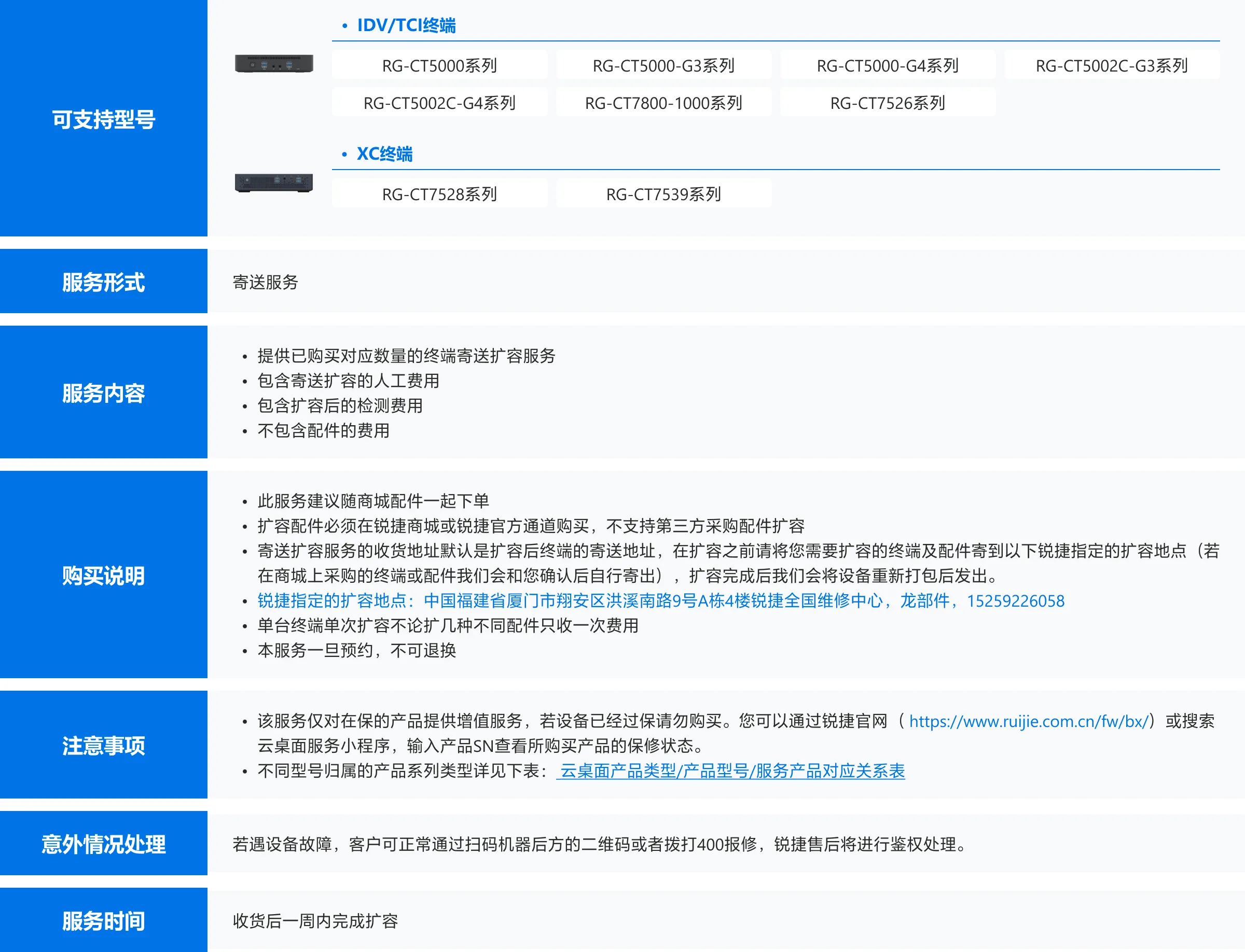 寄送扩容(终端)支持对在售的IDV/TCI系列终端、XC系列终端进行寄送扩容服务
