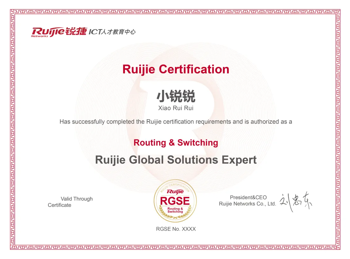 拥有RGSE-Routing and Switching证书,彰显网络专家身份,获得业内认可,赢得客户信任。