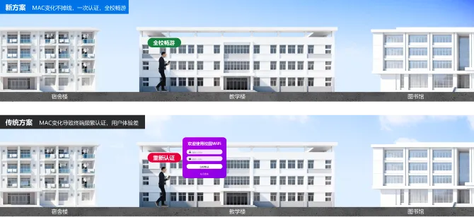采用终端指纹技术,不再依赖MAC地址作为唯一身份标识,实现MAC地址变化,用户体验不变,无需重新认证,减少师生无感失效投诉。